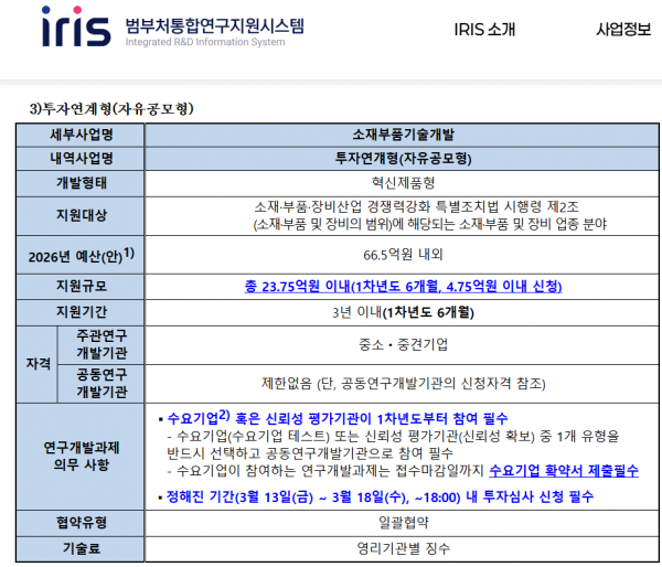 - 2026년 소재부품장비 융합혁신지원단 기술지원사업(심화) 시행계획 공고
