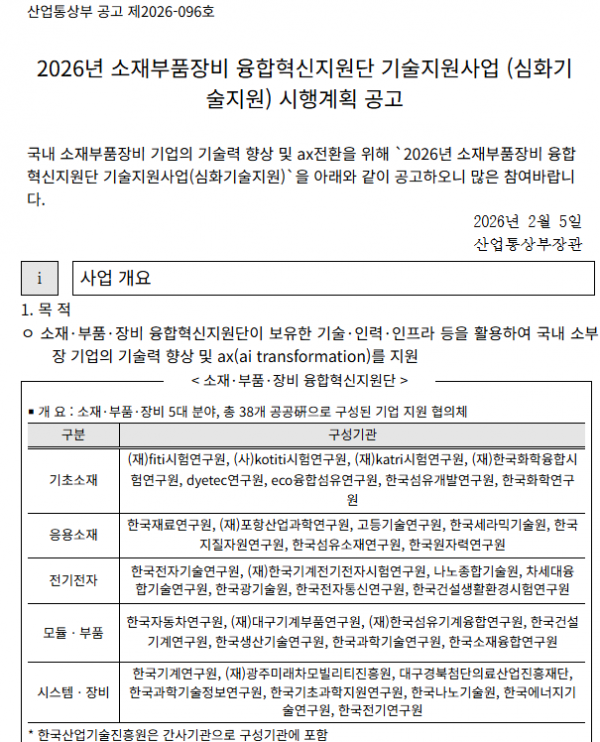 - 2026년도 소재부품기술개발사업(2차) 신규지원 대상과제 공고